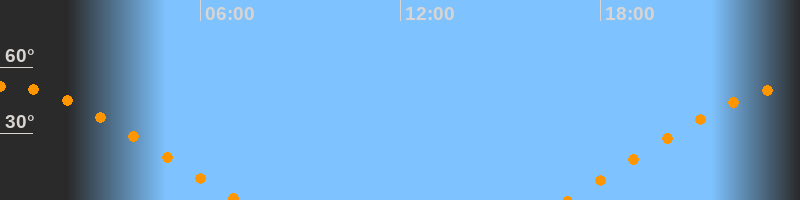| Untergang | 07:09 Uhr im Westen (αAz = 290°) |
