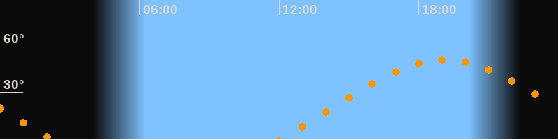 | Aufgang | 12:03 Uhr im Osten (αAz = 70°) |
