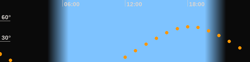 | Aufgang | 11:10 Uhr im Osten (αAz = 70°) |