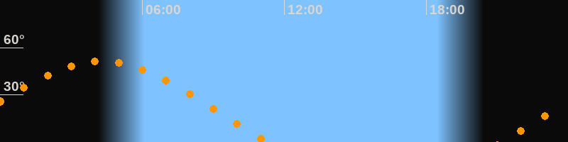 | Untergang | 11:19 Uhr im Westen (αAz = 290°) |