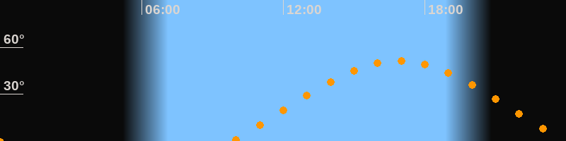 | Aufgang | 09:49 Uhr im Osten (αAz = 70°) |