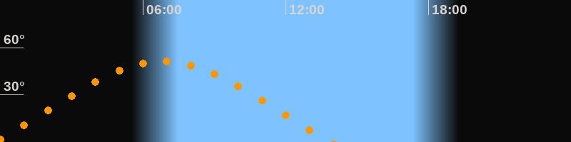 | Aufgang | 23:43 Uhr im Osten (αAz = 70°) |
