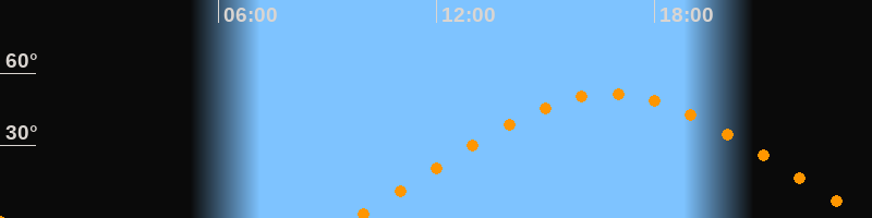 | Aufgang | 09:42 Uhr im Osten (αAz = 70°) |