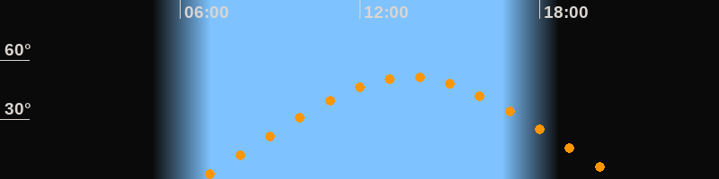| Aufgang | 06:37 Uhr im Osten (αAz = 70°) |