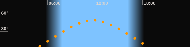 | Aufgang | 04:44 Uhr im Osten (αAz = 70°) |