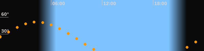 | Untergang | 11:23 Uhr im Westen (αAz = 290°) |