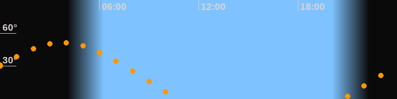 | Untergang | 10:48 Uhr im Westen (αAz = 290°) |