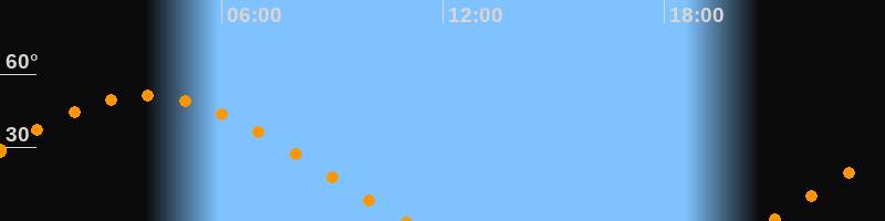 | Untergang | 10:59 Uhr im Westen (αAz = 290°) |