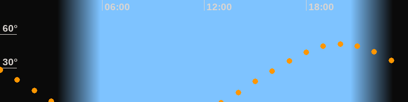 | Untergang | 03:09 Uhr im Westen (αAz = 290°) |