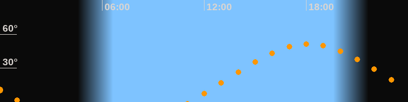| Untergang | 01:11 Uhr im Westen (αAz = 290°) |