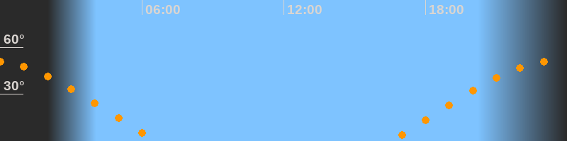 | Aufgang | 16:28 Uhr im Osten (αAz = 70°) |
