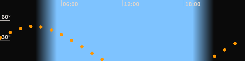 | Untergang | 10:20 Uhr im Westen (αAz = 290°) |