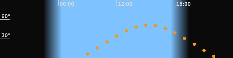 | Aufgang | 08:14 Uhr im Osten (αAz = 70°) |