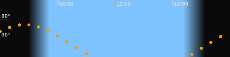 | Aufgang | 19:27 Uhr im Osten (αAz = 70°) |