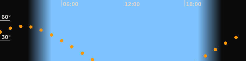 | Untergang | 09:18 Uhr im Westen (αAz = 290°) |