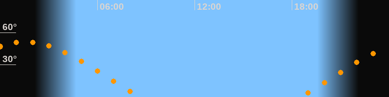 | Aufgang | 18:28 Uhr im Osten (αAz = 70°) |
