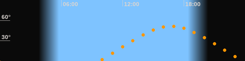 | Aufgang | 09:41 Uhr im Osten (αAz = 70°) |