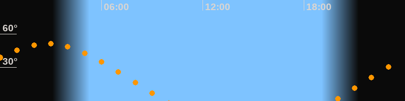 | Aufgang | 19:40 Uhr im Osten (αAz = 70°) |