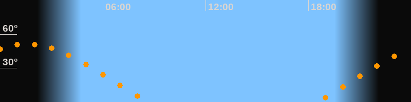 | Aufgang | 18:29 Uhr im Osten (αAz = 70°) |