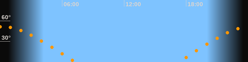 | Aufgang | 17:10 Uhr im Osten (αAz = 70°) |