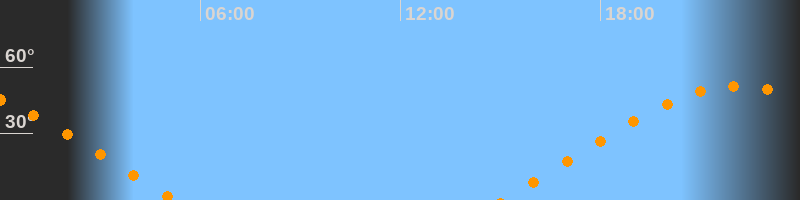 | Untergang | 05:15 Uhr im Westen (αAz = 290°) |