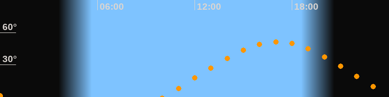 | Untergang | 00:08 Uhr im Westen (αAz = 290°) |