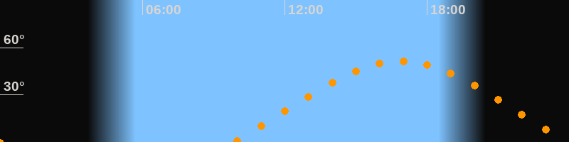| Aufgang | 09:50 Uhr im Osten (αAz = 70°) |