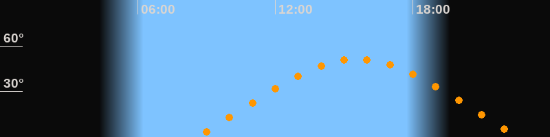 | Höchster Stand (Kulmination) | 15:34 Uhr (h = 51,3°) |