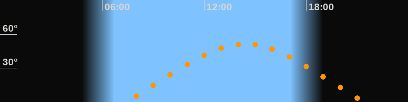 | Aufgang | 07:20 Uhr im Osten (αAz = 70°) |