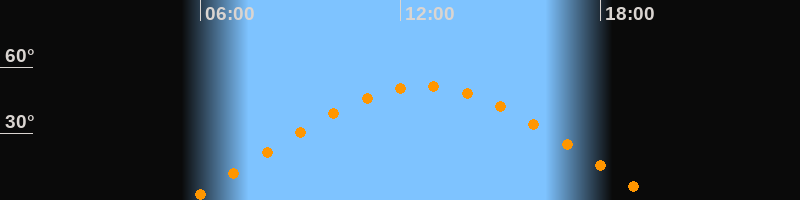 | Aufgang | 05:38 Uhr im Osten (αAz = 70°) |