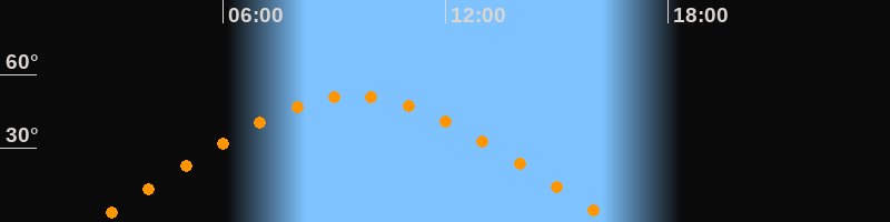 | Aufgang | 02:29 Uhr im Osten (αAz = 70°) |