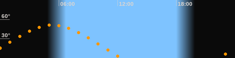 | Untergang | 12:24 Uhr im Westen (αAz = 290°) |