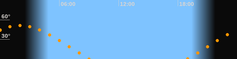 | Untergang | 09:04 Uhr im Westen (αAz = 290°) |