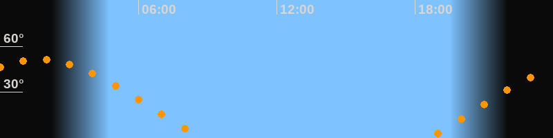 | Untergang | 08:44 Uhr im Westen (αAz = 290°) |