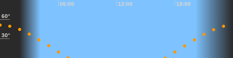 | Untergang | 07:06 Uhr im Westen (αAz = 290°) |