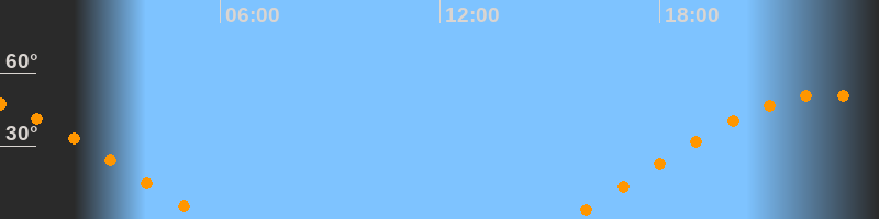 | Aufgang | 15:29 Uhr im Osten (αAz = 70°) |