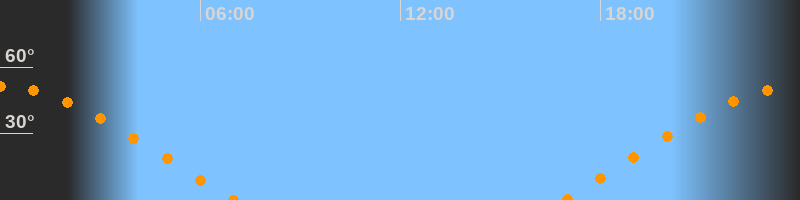 | Untergang | 07:03 Uhr im Westen (αAz = 290°) |