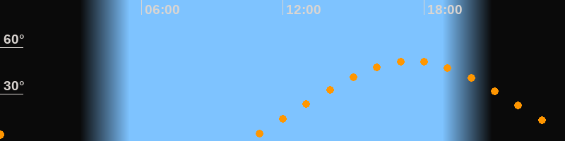 | Aufgang | 10:23 Uhr im Osten (αAz = 70°) |