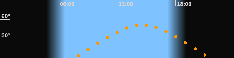 | Aufgang | 07:30 Uhr im Osten (αAz = 70°) |
