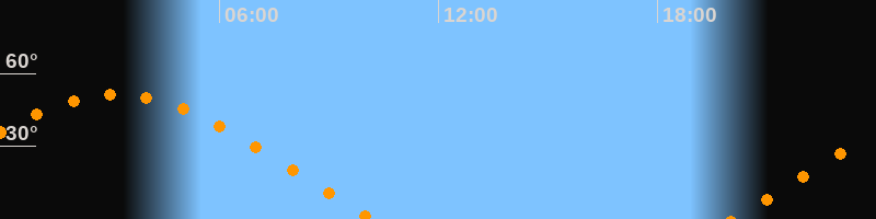 | Untergang | 10:13 Uhr im Westen (αAz = 290°) |