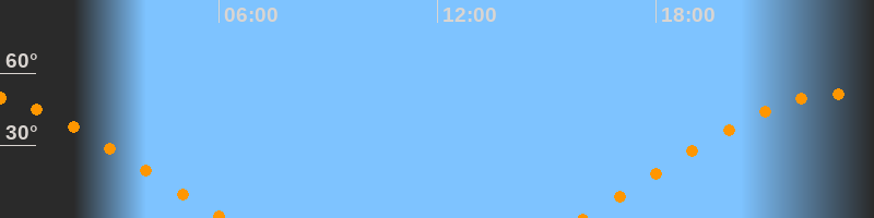 | Untergang | 06:09 Uhr im Westen (αAz = 290°) |