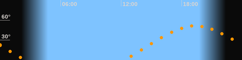 | Aufgang | 12:18 Uhr im Osten (αAz = 70°) |