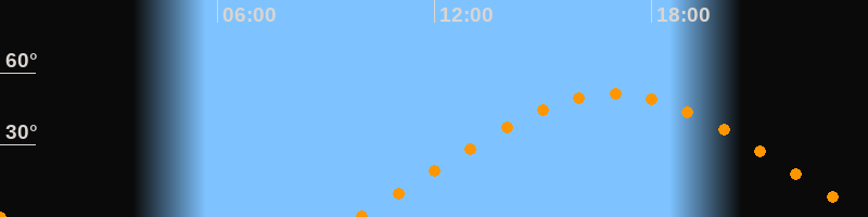 | Aufgang | 09:53 Uhr im Osten (αAz = 70°) |