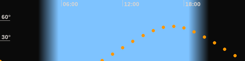 | Aufgang | 09:49 Uhr im Osten (αAz = 70°) |
