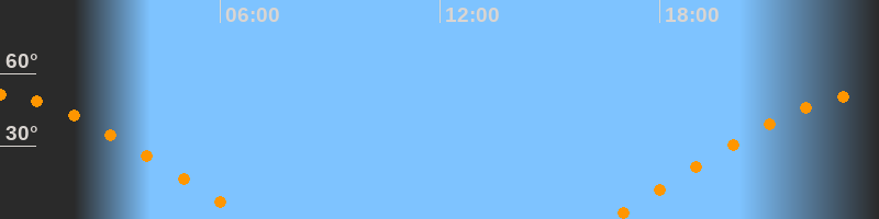 | Untergang | 06:49 Uhr im Westen (αAz = 290°) |