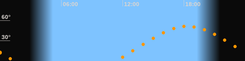| Aufgang | 11:16 Uhr im Osten (αAz = 70°) |