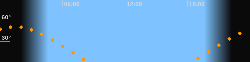 | Aufgang | 18:19 Uhr im Osten (αAz = 70°) |
