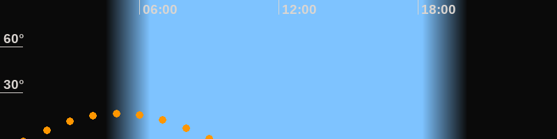 | Untergang | 09:09 Uhr im Südwesten (αAz = 233,6°) |