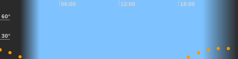 | Aufgang | 18:28 Uhr im Südosten (αAz = 126,4°) |