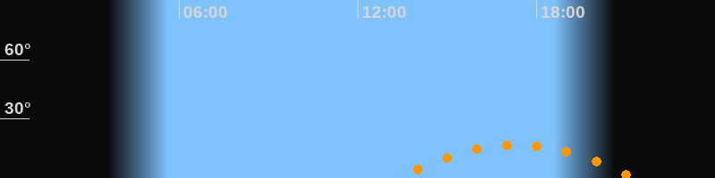 | Höchster Stand (Kulmination) | 17:19 Uhr (h = 16,7°) |